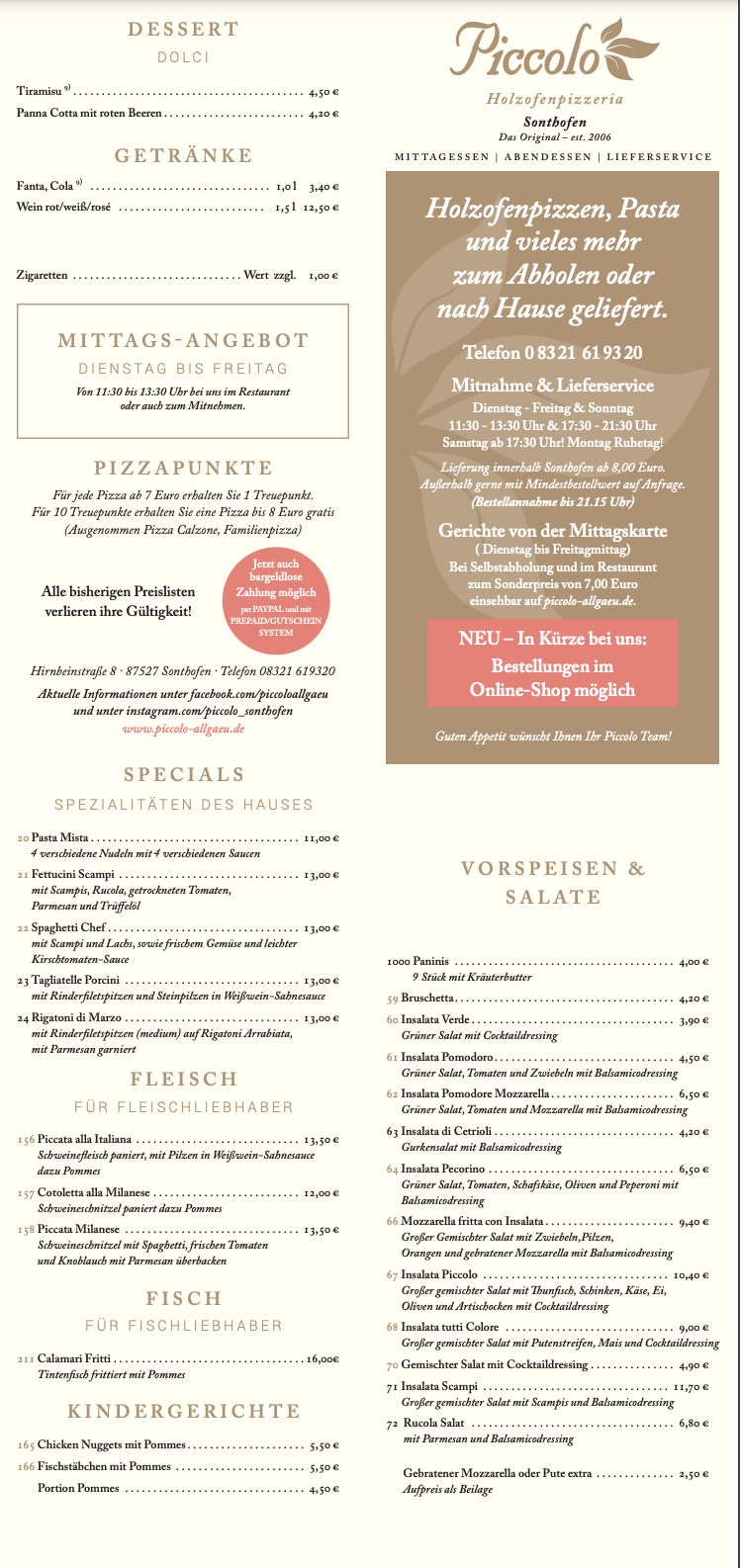 Bei Fragen, Reservierungen oder Bestellungen einfach anrufen - Wir sind zu den angegebenen Öffnungszeiten für Sie da!